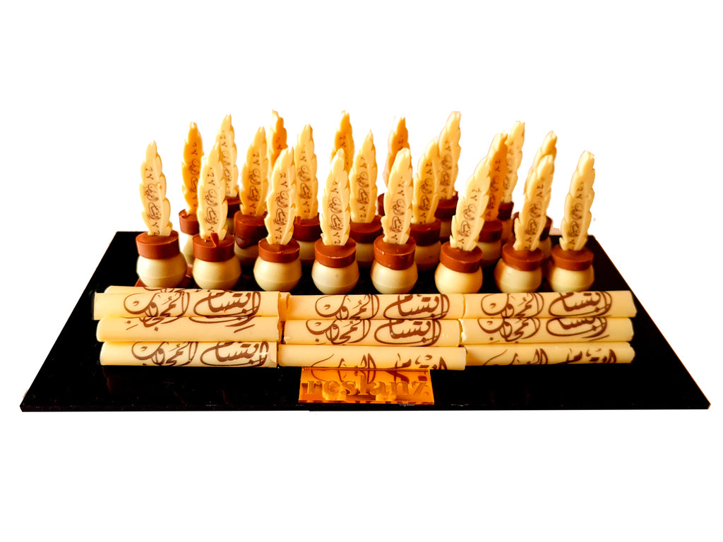 Feather and chocolate roll tray. can be personalized with any name or message.