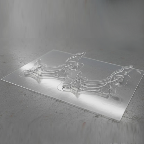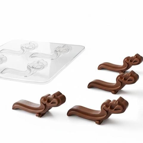 Chocolate plastic mold with 2 cavities. size of each cavities is 6 cm and thickness is 5 mm.